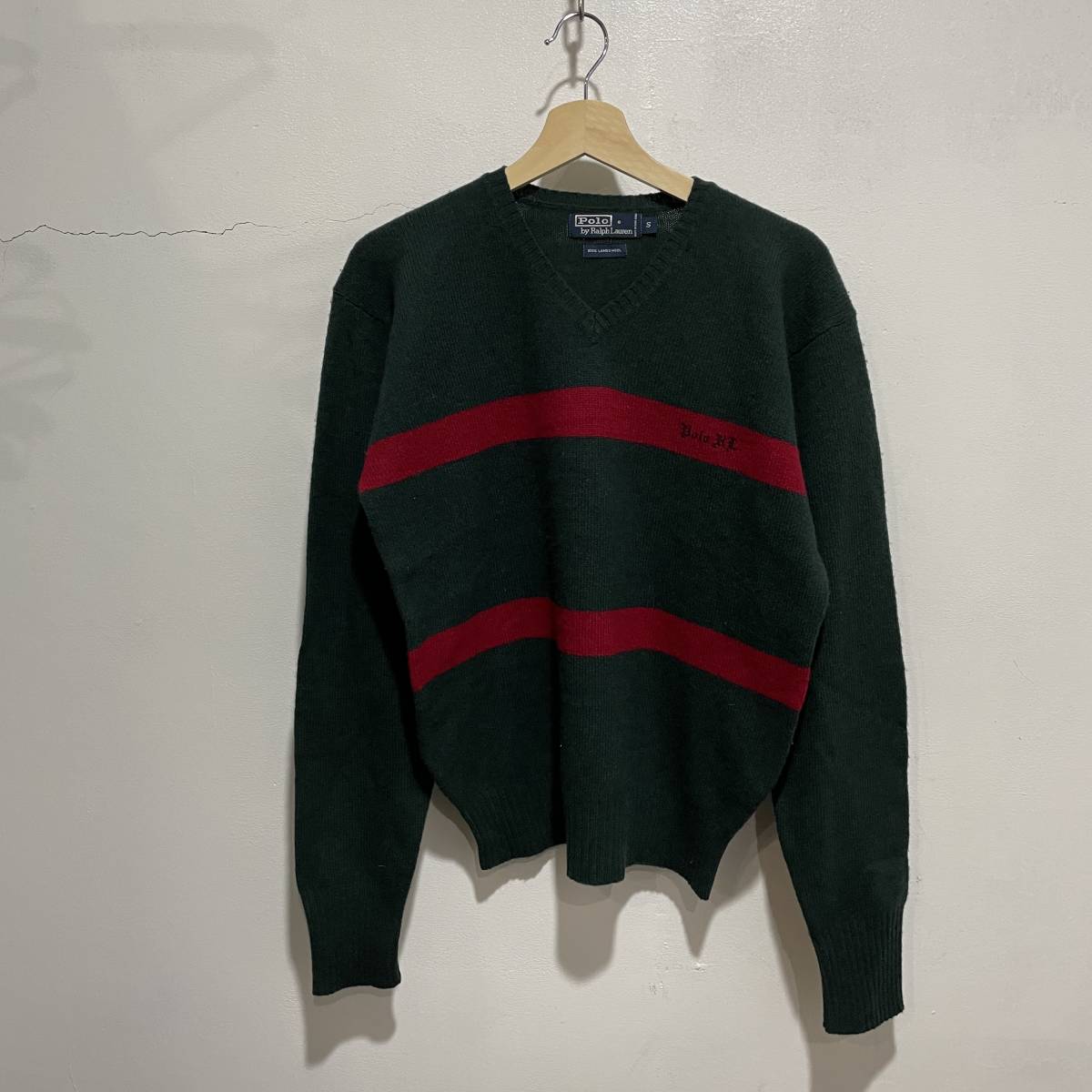 - ☆送料無料☆Ralph Lauren☆ラムウール☆Vネックラインボーダーセーター☆グリーンレッド☆S☆z20c