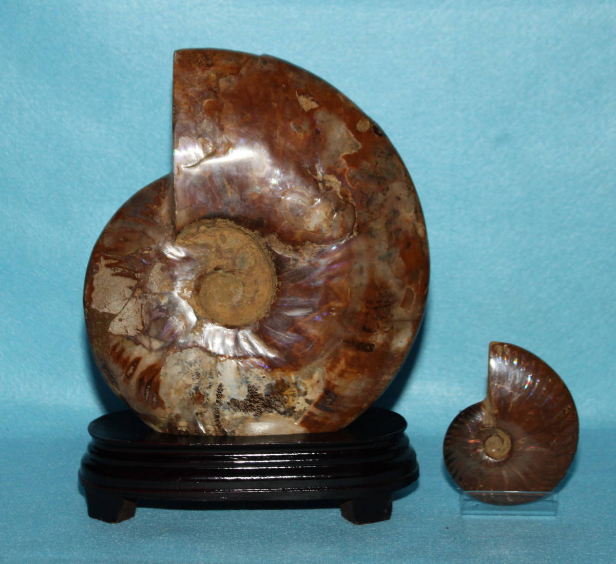 - アンモナイト とても大きい 約2,172g 最大径約214mm ★送料無料 台座付き ★虹色の輝き 縫合線 Y8005