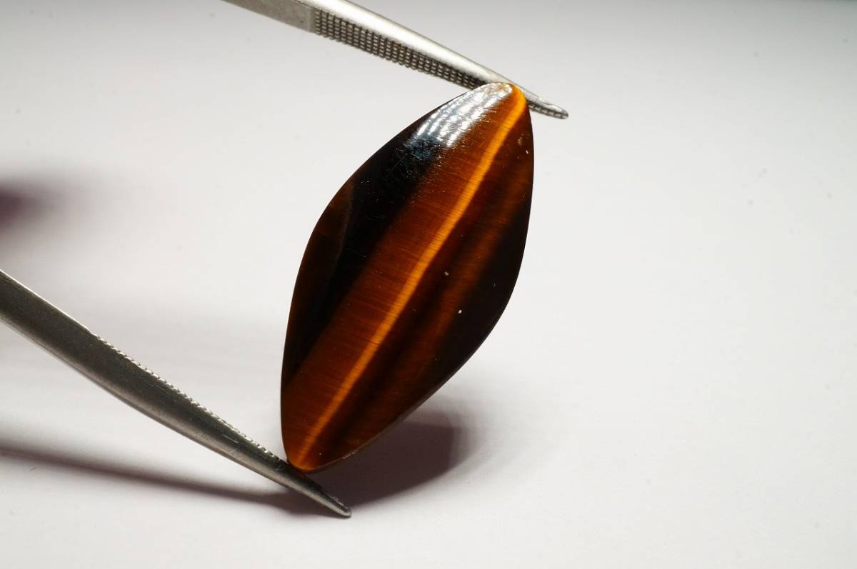 > 【即決特別価格!早い者勝ちです!】美しい目が出る特大天然虎目石(タイガーアイ)のオリジナルカットルース【トラ目石・トラメ石】11.0ct