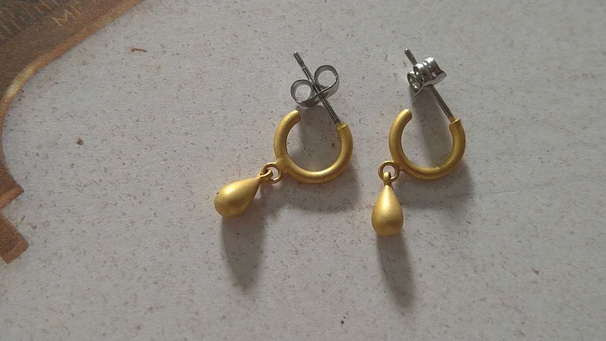 - □マットゴールドカラー×しずく型・揺れるピアス□