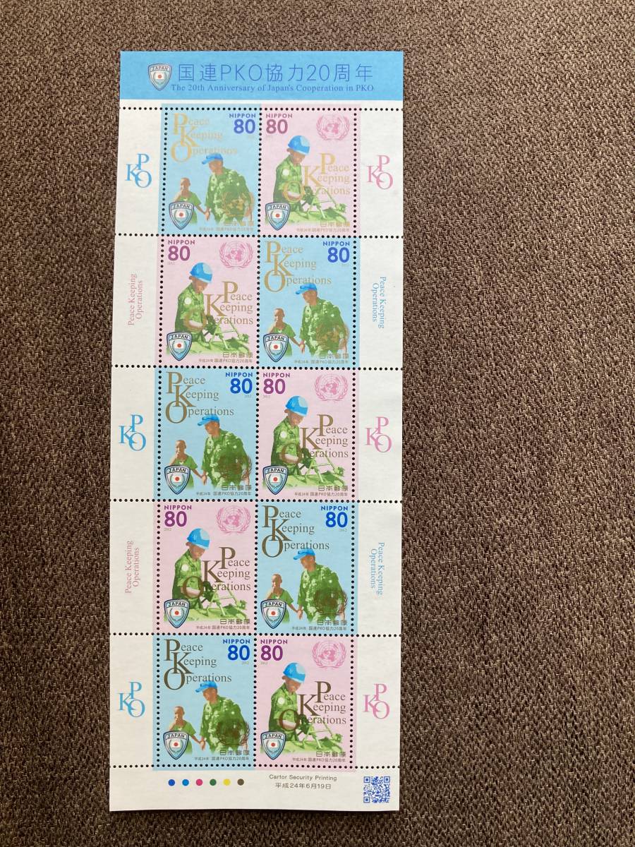 - ★未使用 国連PKO協力20周年 PKO要員 平成24年 2012年 記念 切手シート 80円 10枚