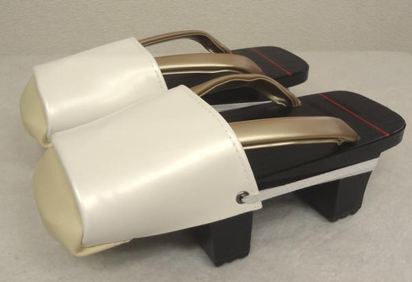 - 3739 *雨下駄* 爪皮つき 歯下駄「白/金茶」-
