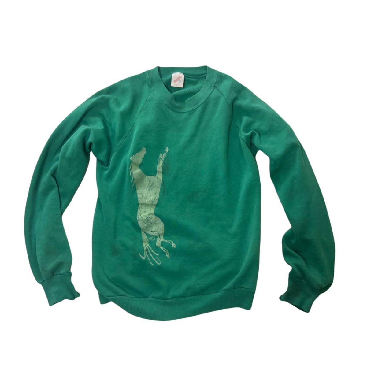 - 1980s JERZEES ビンテージ 馬 プリントスウェットシャツ 襤褸 ボロ 古着 ジャージーズ USA製 ダメージ ホース デザイン
