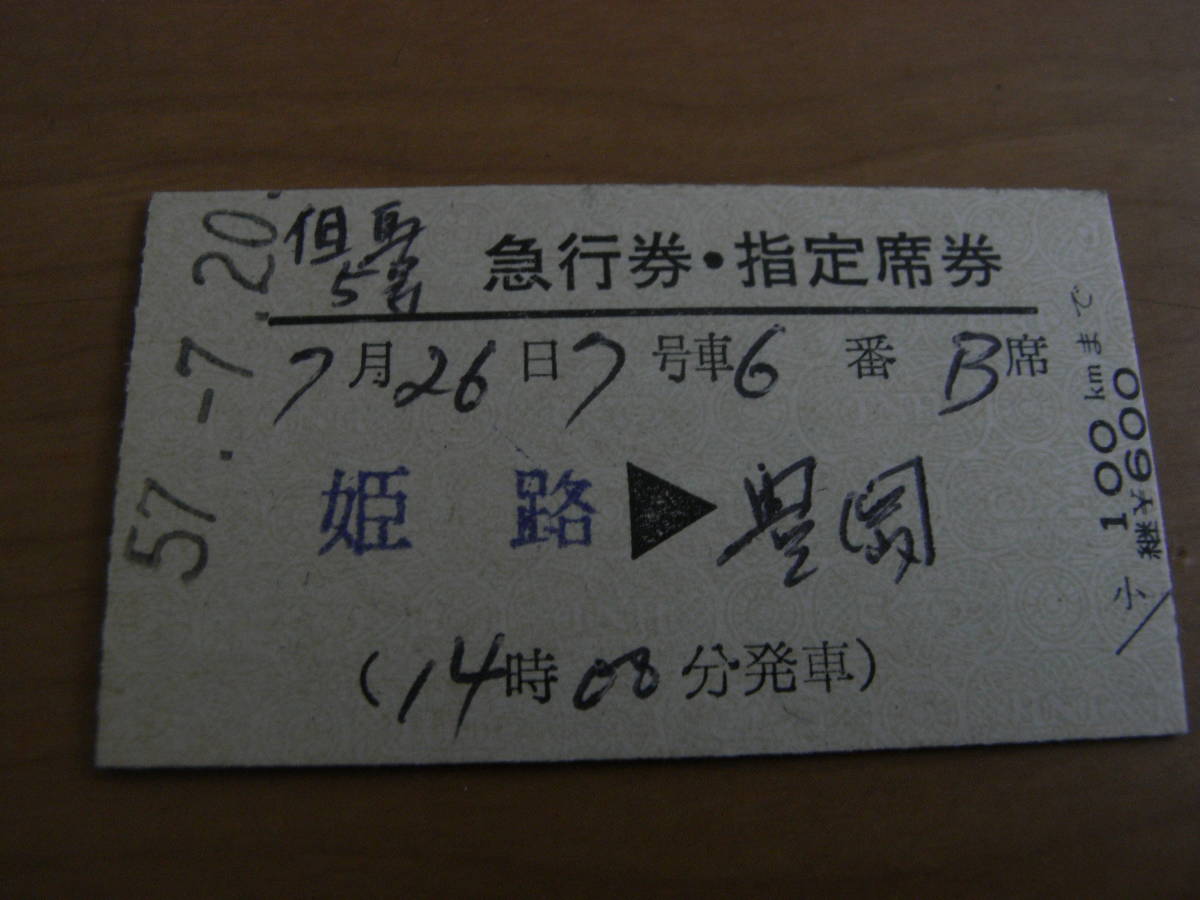 - 但馬5号 急行券・指定席券 姫路→豊岡 昭和57年7月20日 行橋駅発行