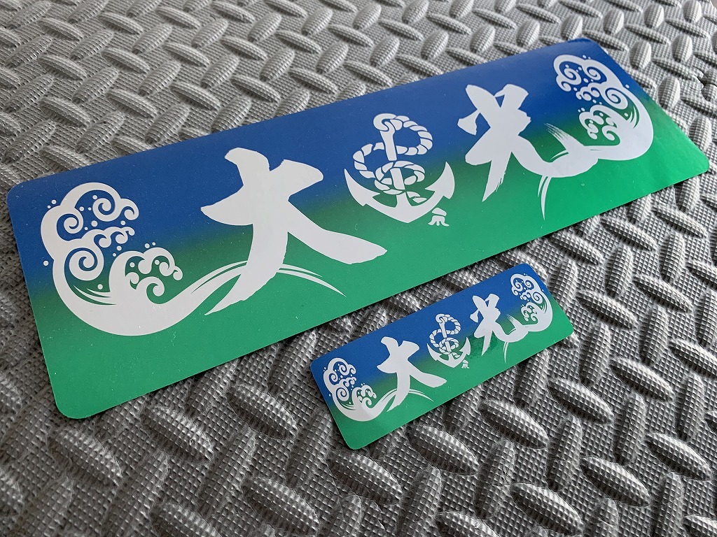 - 送料無料【デコトラ オーダー 防水ステッカー】2枚セット 青緑グラデ/銀字 波 錨 デコトラ スクリーン アンドン アルナ 飾り板