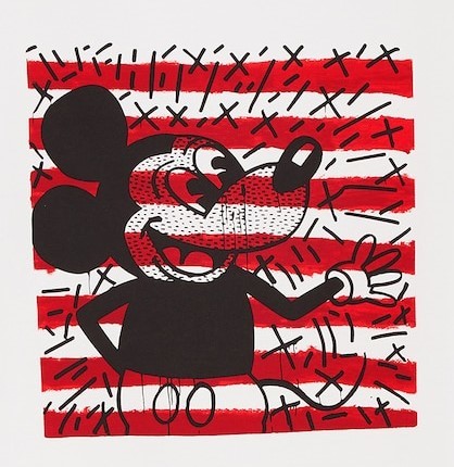 > 2020 限定品 UNIQLO UT トリプルコラボ『ミッキーマウス×キース・ヘリング』丸首 半袖 白 前プリント 両袖にネーム L※未開封品/タグ付き