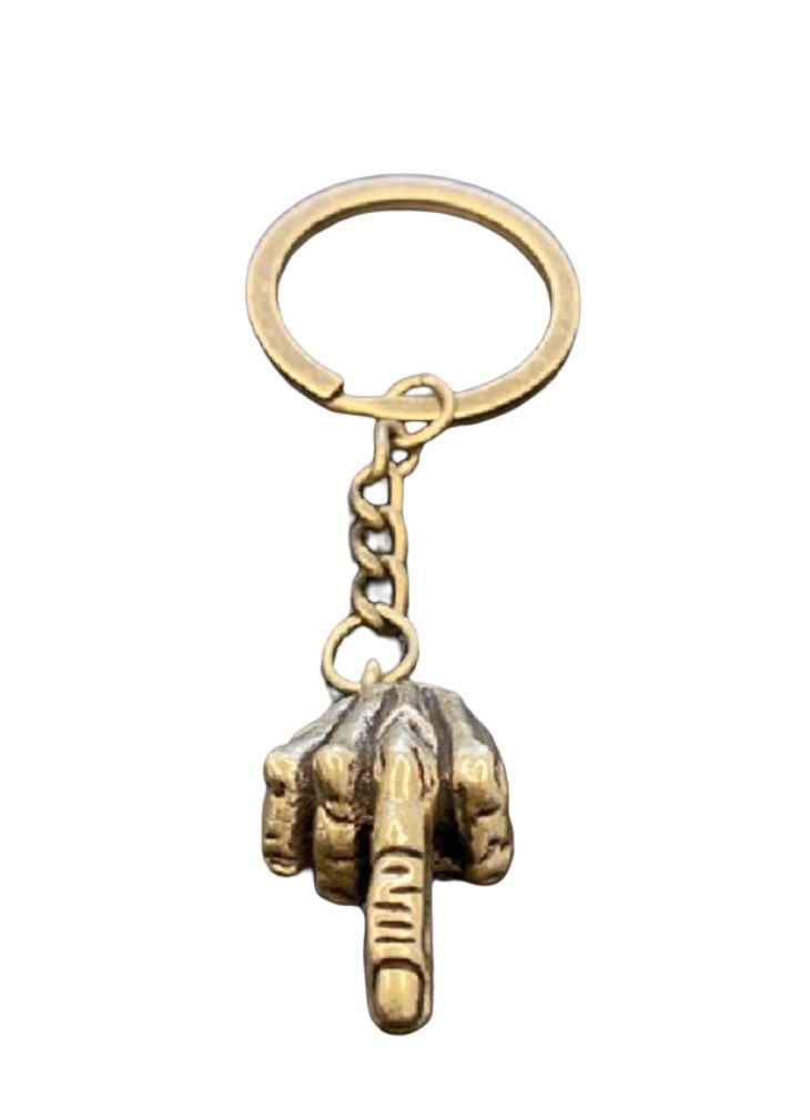 - 真鍮 ファックユー キーホルダー キーリング 中指 アクセサリー 二重カン 5-3