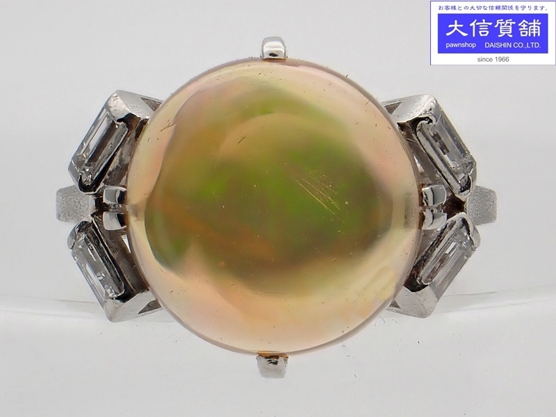 > PM プラチナ ダイヤ メキシコオパールリング 2.85ct D0.20ct 11号 5.7g 中古B+ 【送料無料】 C-8242