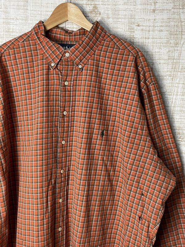 > ☆超ビッグサイズ US古着 POLO Ralph Lauren ラルフローレン 綿シャツ コットンシャツ チェック柄 ポニーロゴ刺繍 オレンジ【3XL】◆3337◆