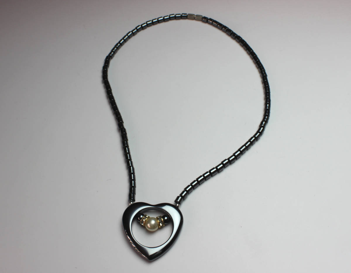 > ハートの中にパール ヘマタイト ネックレス インディアン ジュエリー【新品 未使用】アコマプエブロ族 ネイティブアメリカン アクセサリー