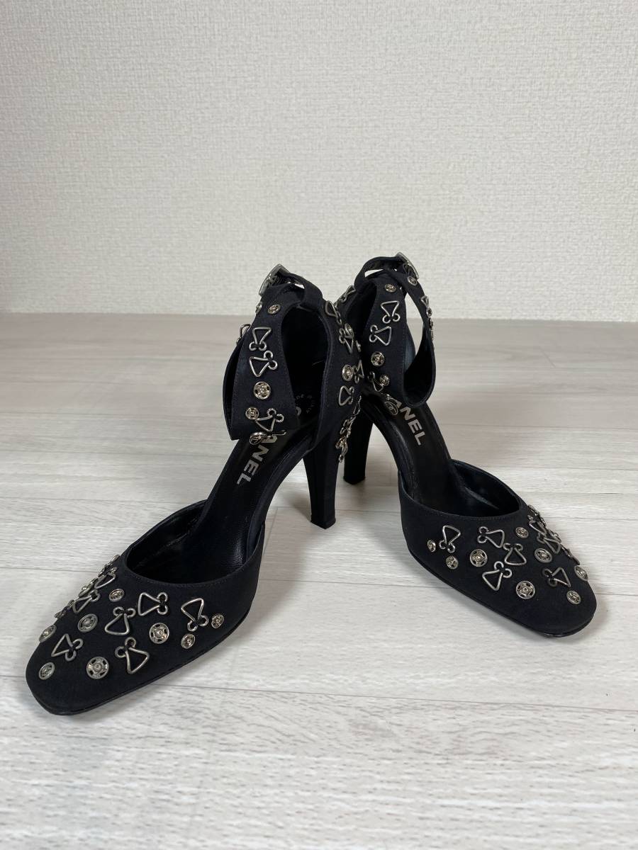 - ★03A シャネル CHANEL スナップボタン ヒール パンプス ミュール 黒 35