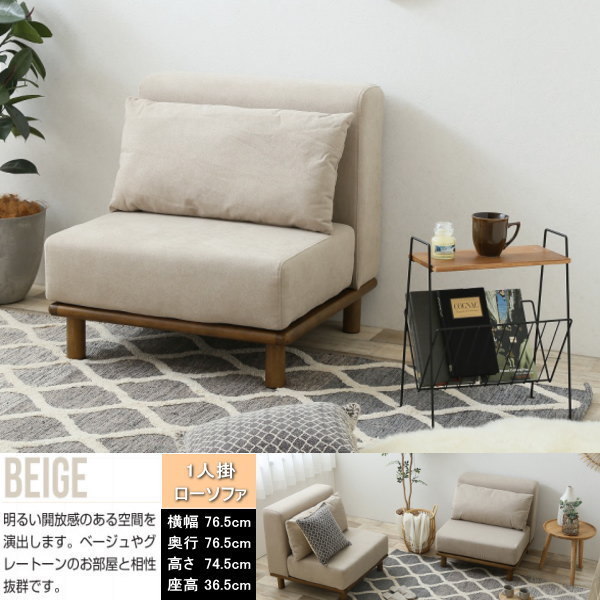 - 送料無料 北欧スタイル 肌さわり抜群ファブリック Ivy 1人掛けローソファ 横幅76cm 広い座面 ゆったり背もたれ BEIGE ベージュ
