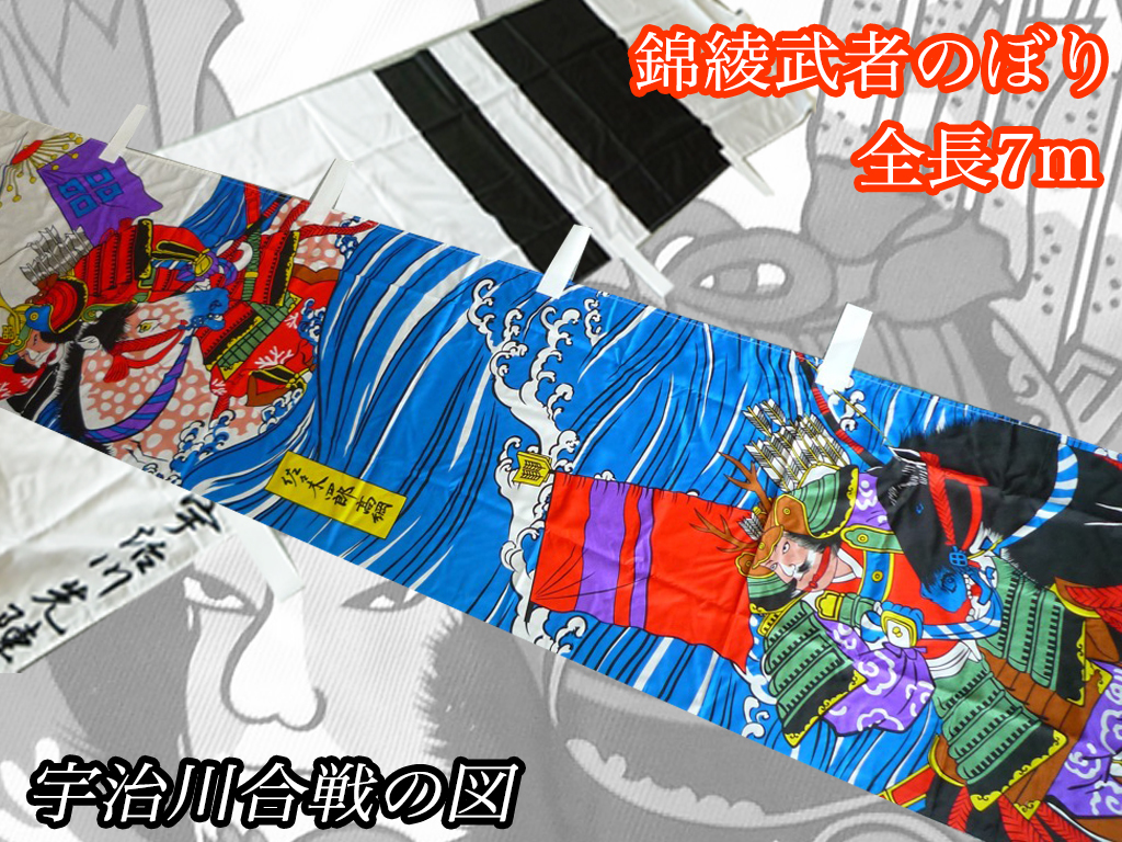- 新品未使用 錦綾武者のぼり 鯉のぼり 宇治川合戦の図 梶原源太景季 佐々木四郎高綱 東レ 源平合戦 絵幟 端午の節句 幟旗 戦国武将 庭園