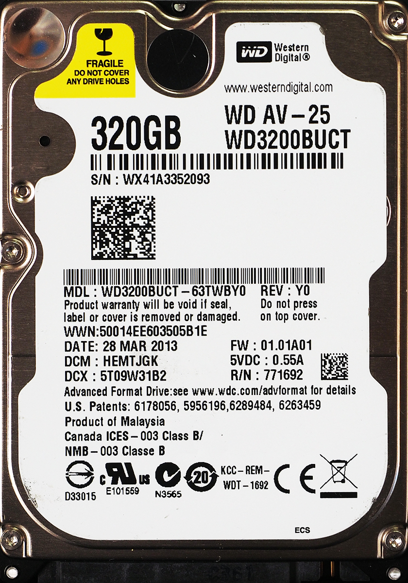 > Western Digital WD AV-25 WD3200BUCT-63TWBY0 2.5インチ 9.5mm SATA300 320GB 10687回 9745時間