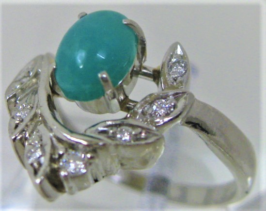 - 【東京 谷中 質屋おぢさん】希少Pt900プラチナ リング指輪クリソコーラ0.526ct ダイヤ0.08ct
