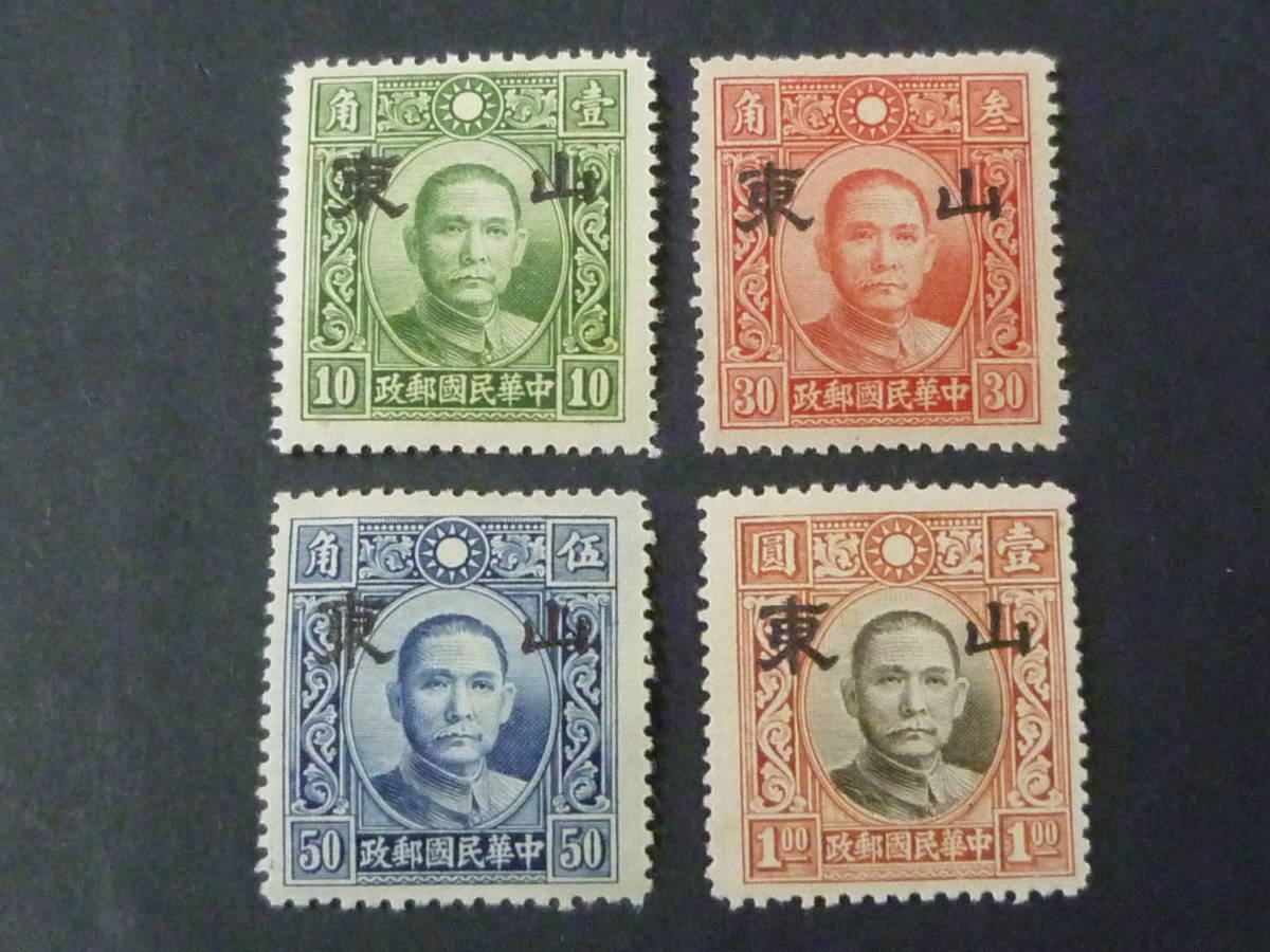 - 22 S №246 中国占領地切手 1941年~ 山東 大字加刷 国父像大東版 無水 10c-$1 計4種 未使用OH