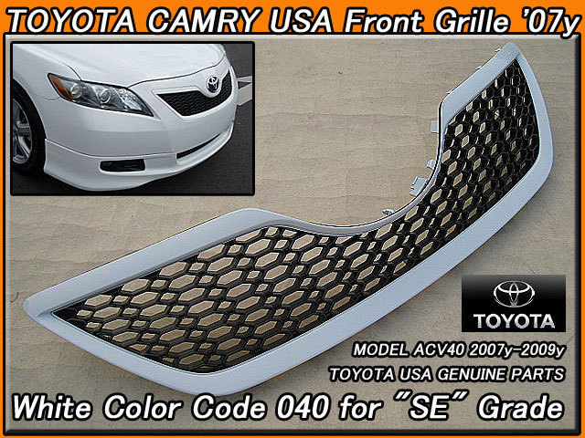 > カムリACV40前期/TOYOTA/トヨタCAMRY純正USフロントグリル-SEグレード07-09モデル白色(040)/USDM北米仕様スポーツTypeハニカムUSAホワイト