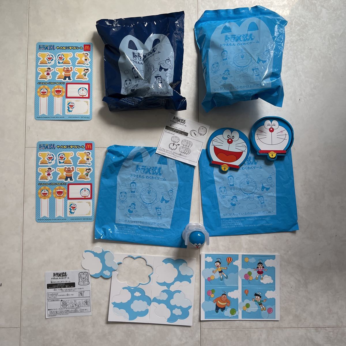 - ハッピーセット マクドナルド ドラえもん 4セット未開封2開封済み2おもちゃ ごほうびシール2枚