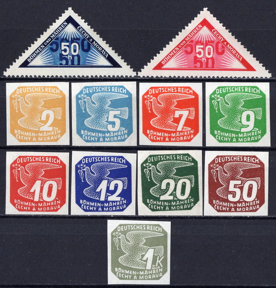 - ★1939-43年ドイツ占領地 - ベーメン・メーレン保護領 - 「個人配達切手」2種完+「新聞切手」9種完 未使用(MNH)★ZW-678