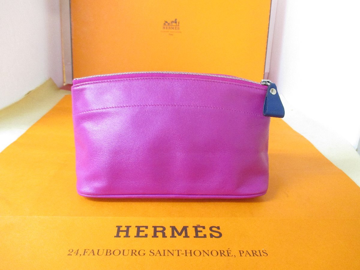> 本物保証【即決で送料無料】良品/エルメス/アニョーミロ/C刻印/パープルピンク系/化粧/ポーチ/小物入れ/コスメ/エルメスの正規品