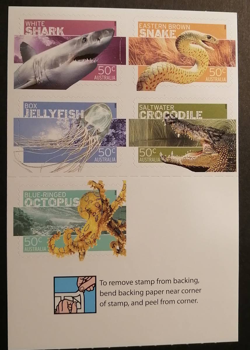 - オーストラリア 危険生物(5種ペーン, シール式) MNH
