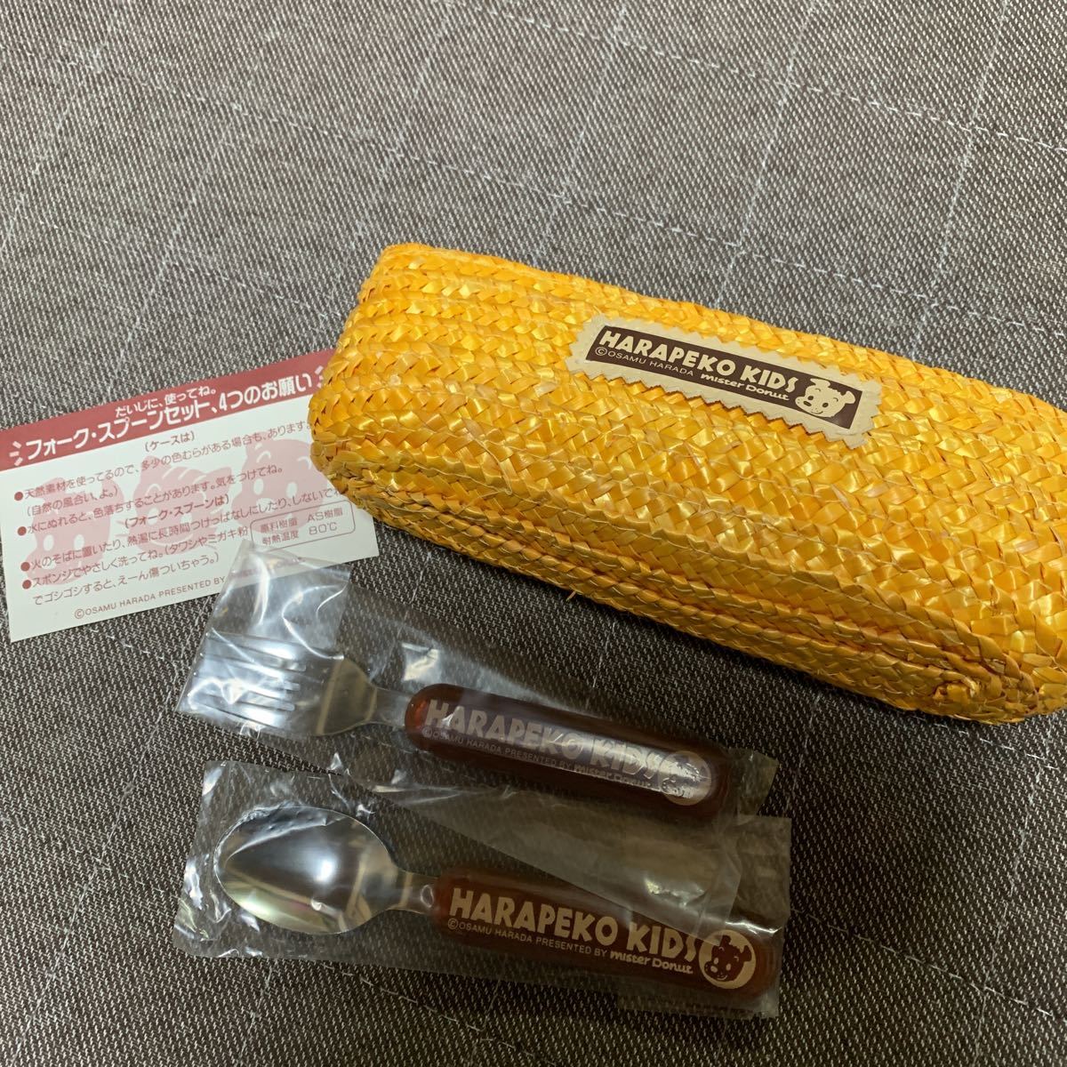 - 新品 オサムグッズ はらぺこキッズ フォーク・スプーンセット ケース付き黄 ミスタードーナツ 非売品 ノベルティオサムハラダosamu goods