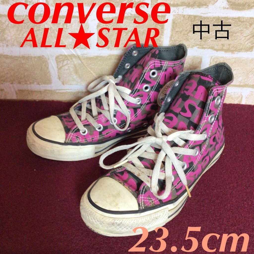 - 【売り切り!送料無料!】A-185 CONVERSE !ALLSTAR!ハイカットキャンパススニーカー!23.5cm!ピンク×ブラック!市松模様!おしゃれ!通学!中古!
