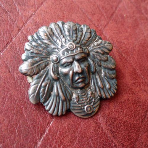 羽根飾りを身につけたインディアンのブローチです。
