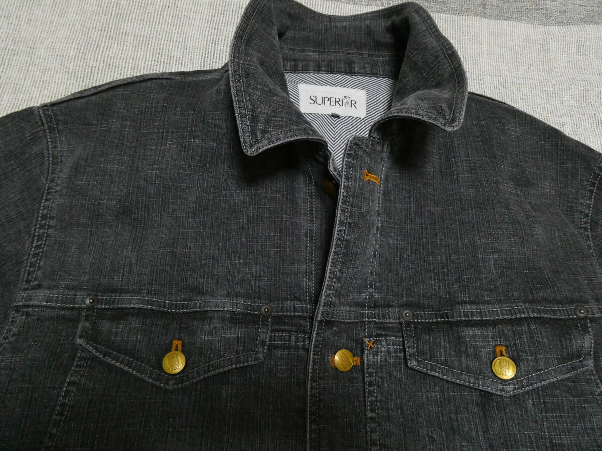 > スペリオ 上質ブラックデニムカバーオール ジャケット 生地もデザインも高級感があります!サイズ50 格安開始!