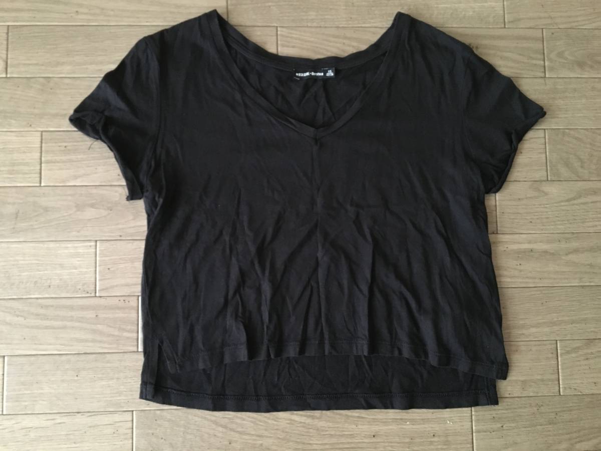 > USED美品☆ BSKGIRL Bershka クロップド丈半袖Tシャツ 黒 サイズXS