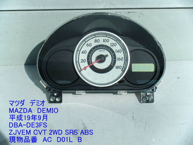 > ◆DE3FS マツダ デミオ スピードメーター ZJVEM CVT AC D01L B 純正 中古 即決 [10862]