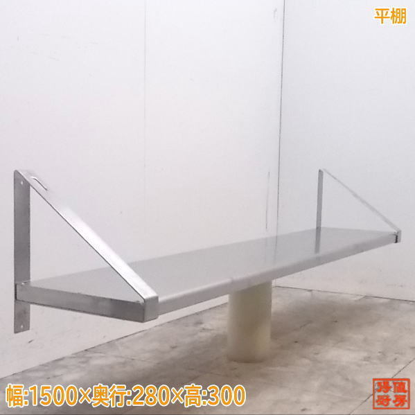 - 中古厨房 ステンレス 平棚 1500×280×300 食器棚 壁棚吊棚 /18K1839Z