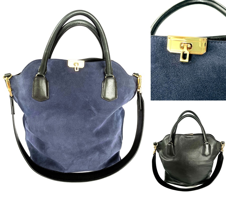 - 美品 レア 稀少 SAZABY サザビー プチリュクス ハイエンド 2way バイカラー トート ショルダー バッグ レザー ブラック ネイビー