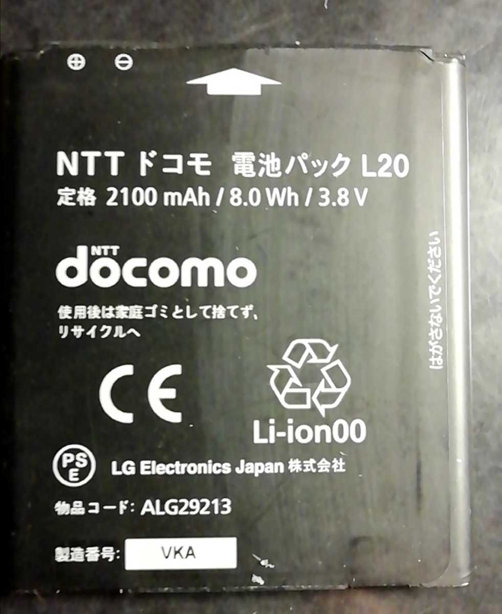 > 【中古・残り1個】NTTドコモL20純正電池パックバッテリー【充電確認済】対応機種(参考)L-02E/L-05E