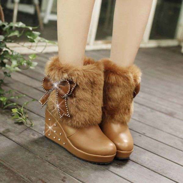 - 冬のムートンブーツ ラインストーンハイヒールブーツ_ブラウン_24.5cm