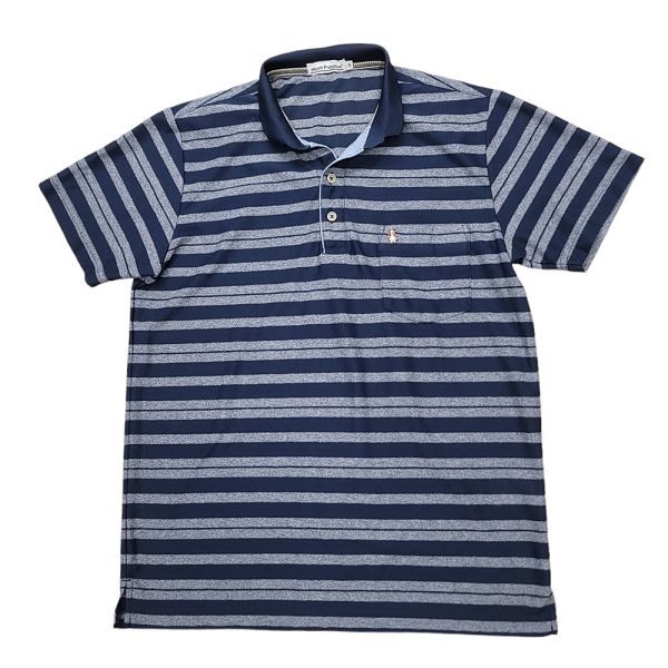 - 261151【Mサイズ】送料無料 良品 Hush Puppies ボーダー ポロカラー ニット ネイビー 薄手 ポロシャツ ハッシュパピー メンズ▲