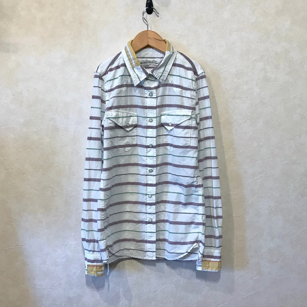 - REMI RELIEF LS ボーダー 上質コットンウエスタンシャツ パッチワークリメイク レミレリーフ