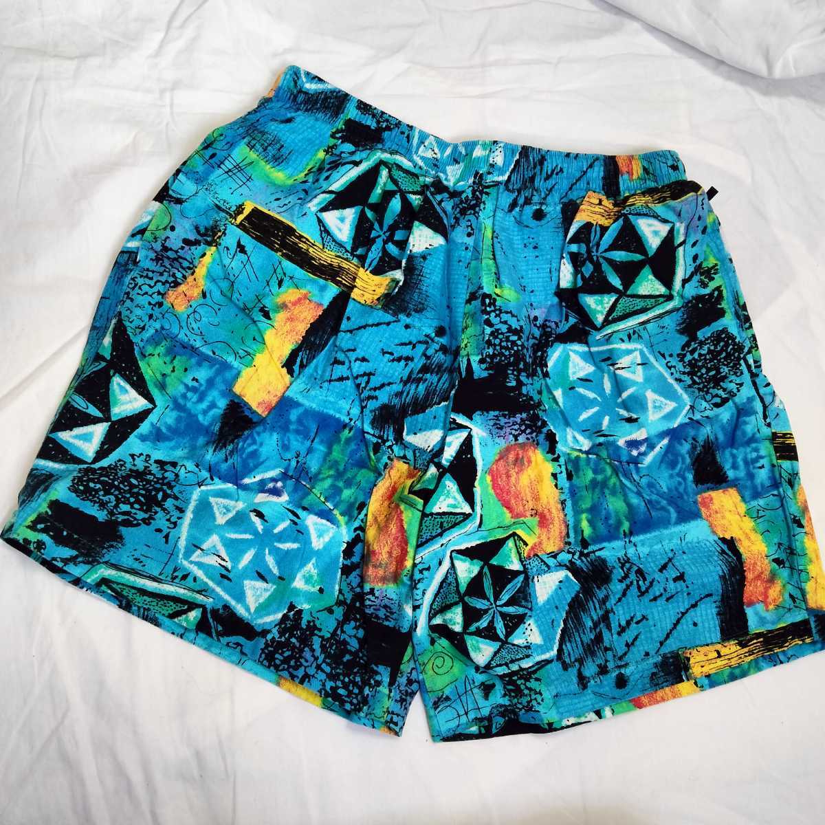 - メンズ水着 L コットン 日本製 丈39 青系 20210709