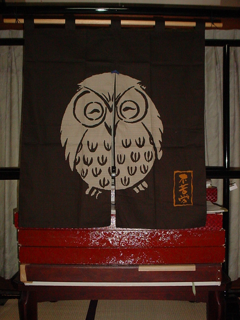 - 【 のれん 「ふくろう」 綿100% 日本製 新品 海外土産 (株)前田染工謹製 】