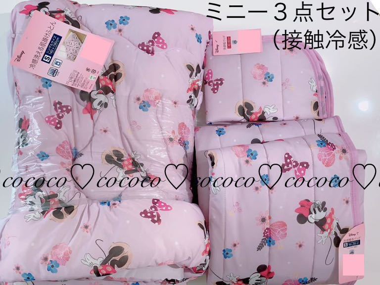 > ミニーちゃん 接触冷感 寝具 3点セット(洗える肌掛けふとん、敷パッド、枕パッド)シングル ディズニー 肌ふとん ミッキー 新品