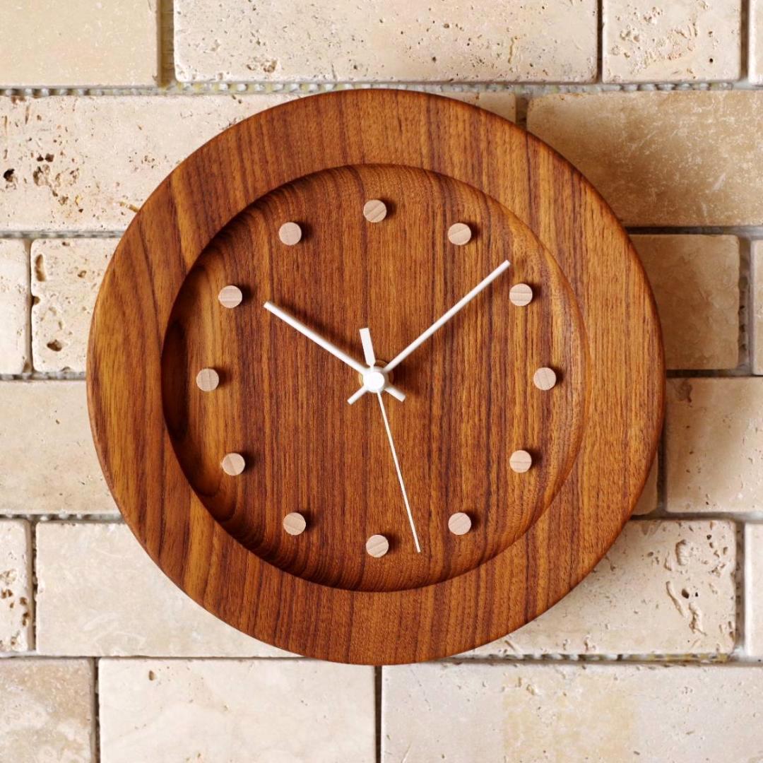 - 【ビンテージ】カイボイスン KAY BOJESEN 北欧 デンマーク TEAK チーク 壁掛け 電波時計 壁掛け時計 プレート 無垢 19cm