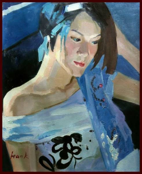 - ☆☆☆☆☆油彩画 照らされた顔が美しい 「涼しげな女」 AE