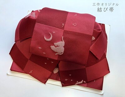 - ▼三作▼税込即決 作り帯 垂れ結び 浴衣帯 変り結び帯 ネコ柄 訳あり ra4