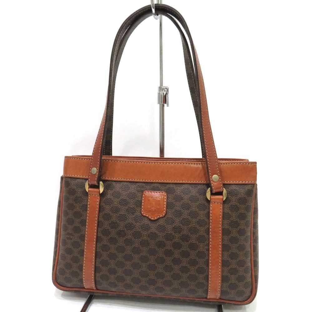 > 中古 セリーヌ マカダム柄 PVC ハンドバッグ ABランク 3ポケット ブラウン CELINE レディース あすつく【送料無料】【西神店】
