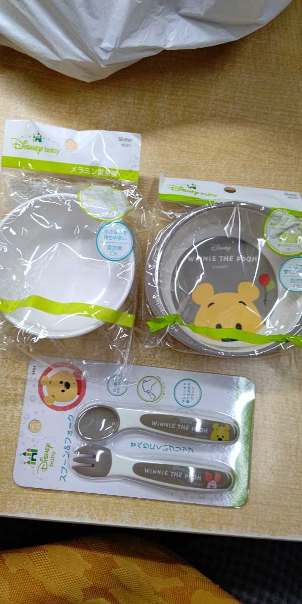 - プーさん くまのプーさん ベビー食器3点セット 新品・未開封・即決 スプーン。フォーク。茶碗。小皿