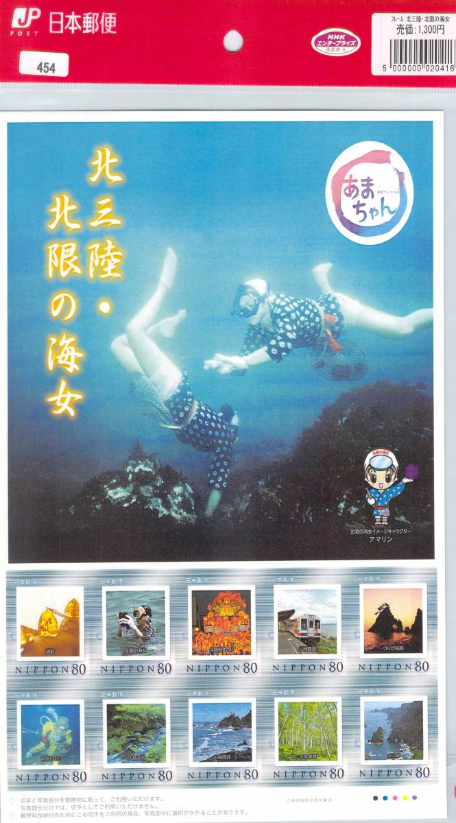 - 454★フレーム切手 北三陸・北限の海女 80円x10★