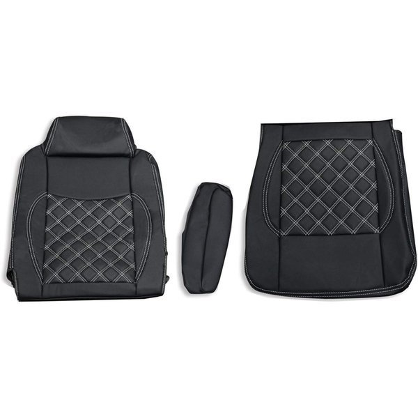 - 日野 レンジャープロ シートカバー 艶無し 黒 運転席 ダイヤモンドステッチ ホワイト AP-CV010R-WL