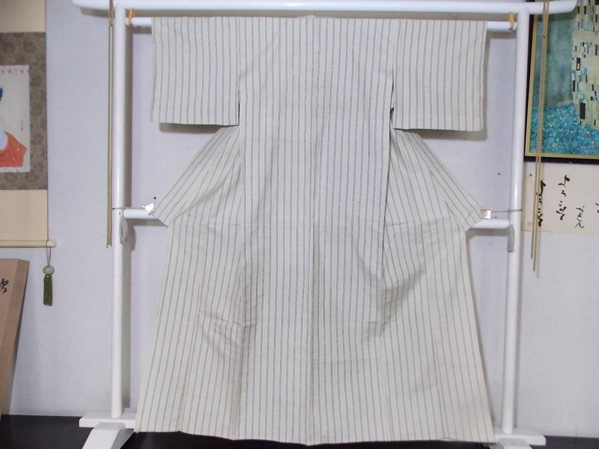 > きもの今昔3907 単衣きもの 紬バチ衿セブセ付き手縫い仕立て 正絹サッパリした紬