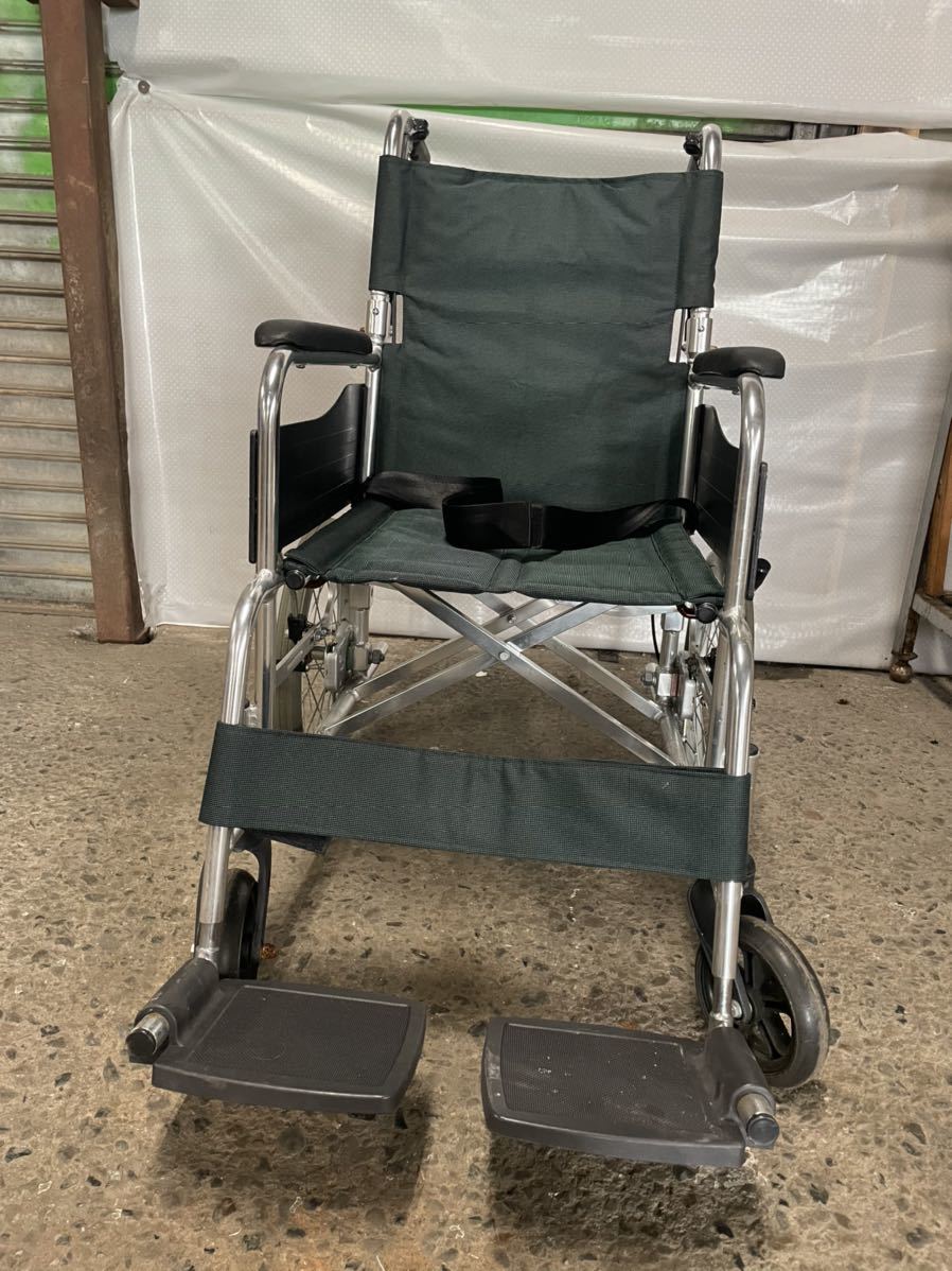 > マキテック KS30-4243GR マキライフテック アルミ製 背折れ・介助式車いす グリーン/ 車いす 車椅子中古 現状渡し