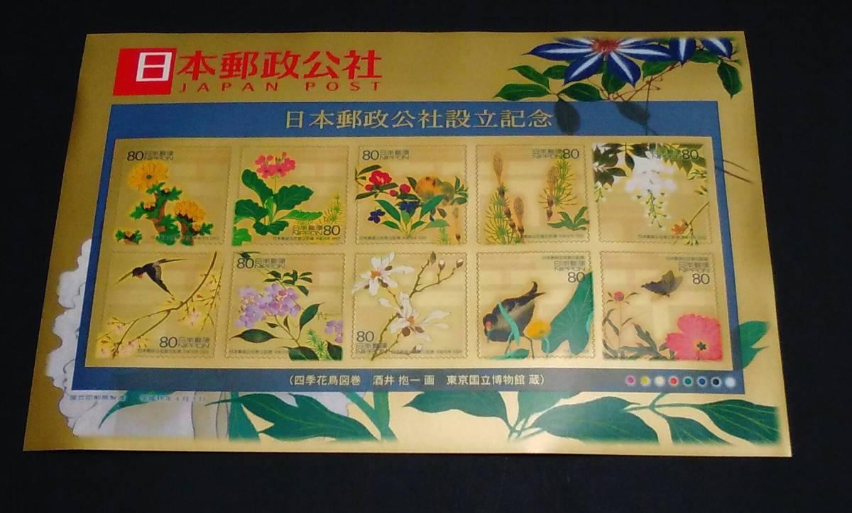 - 2003年・記念切手-日本郵政公社設立シート(四季花鳥図巻)シール式